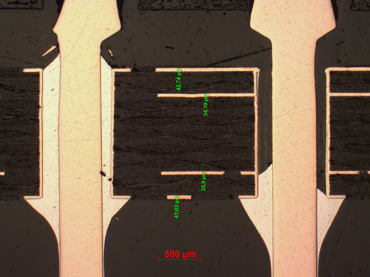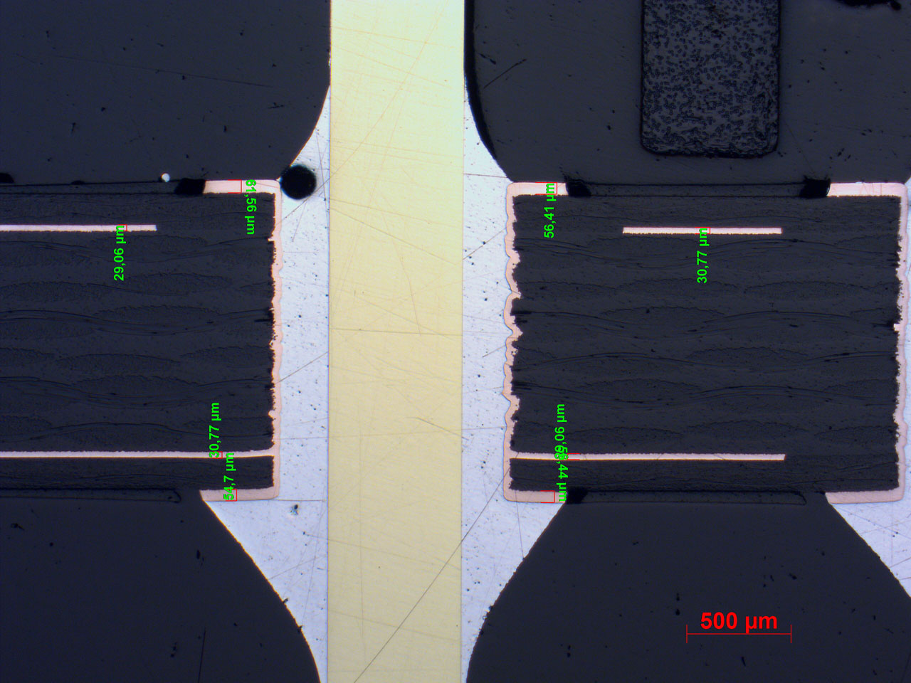 Microsections of PCBs (bare and assembled) provide detailed insights into internal structures and processing quality – far beyond what visual inspection allows.